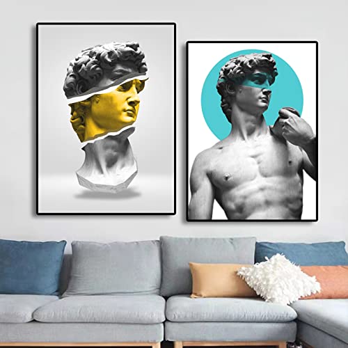 Classico David Statua Poster Art Dipinti David Michelangelo Scultura Canvas Stampe Minimalista 2 Pezzi Wall Art Soggiorno Home Decor 35Cmx50Cmx2Pcs Senza Telaio