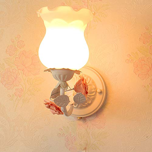 Classico E27 Lampada da Parete Ceramico Rosa Fiori Lampada da Muro Fiorentino Stile Applique da Parete Moderno Luce da muro Tradizionale illuminazione da parete per Camera da Letto corridoio