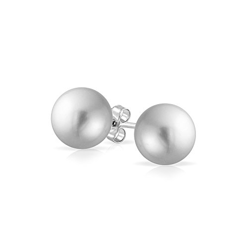 Classico Semplice Elegante Orecchini A Perno A Pallina In Perla Sintetica Grigio Chiaro Per Donne Adolescenti .925 In Argento Sterling 8MM