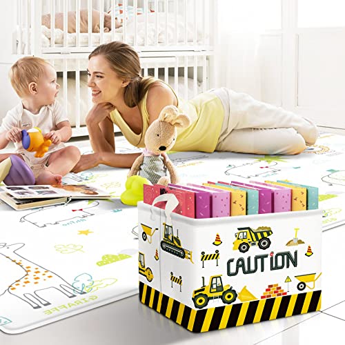 Cestini da Scaffale Veicoli Ingegneristici - Progettato con veicoli ingegneristici gialli, gru, scavatrici e pale che interessano ai bambini, semplici e colorati. Può decorare la stanza dei bambini e portare gioia ai bambini
