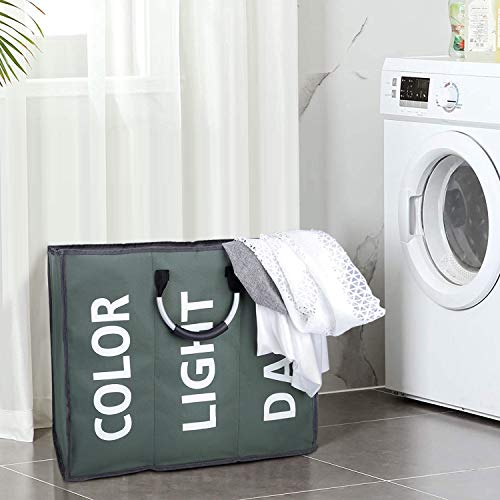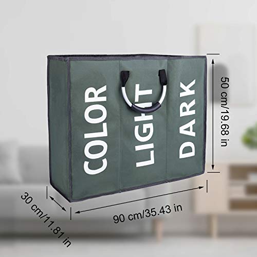 Clastyle 135L Cesto Porta Biancheria Sporca 2 Scomparti Verde Grande Cesta Panni Sporchi Impermeabile per Bagno, 90x30x50 cm