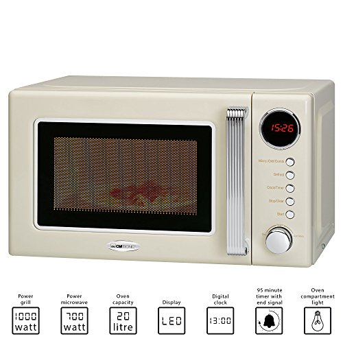 Clatronic MWG 790 - Forno a Microonde con grill da 20 litri, 700 / 1000W, display digitale, 9 programmi automatici, timer, serie Rock & Retro vintage style cream beige