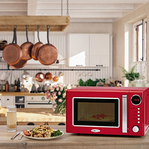 Clatronic MWG 790 - Microonde con grill da 20 litri, 700 / 1000W, display digitale, 9 programmi automatici, timer, serie Rock & Retro vintage style colore rosso