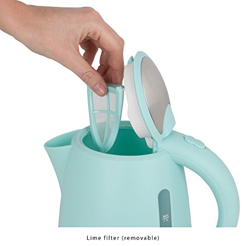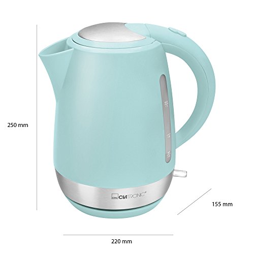 Clatronic WK 3691 Rock 'n 'Retro bollitore 1,7 L, Elemento riscaldante a Scomparsa, Filtro anticalcare, Chiusura Automatica e Manuale, 2200 W, 7 Cups, Plastic, Verde Menta