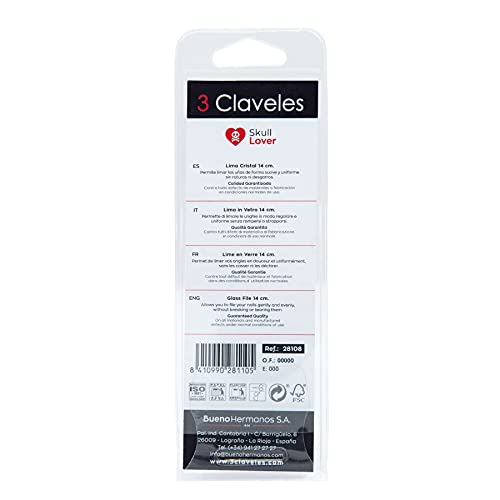 Lima in vetro nnovazione per manicure: presentiamo la lima per unghie in vetro da 14 cm della collezione Skull Lover di 3 garofani, un marchio con tradizione dal 1930. Il suo design elegante e moderno è ideale per una manicure precisa, fornendo una limatura delicata ed efficace per unghie impeccabili.