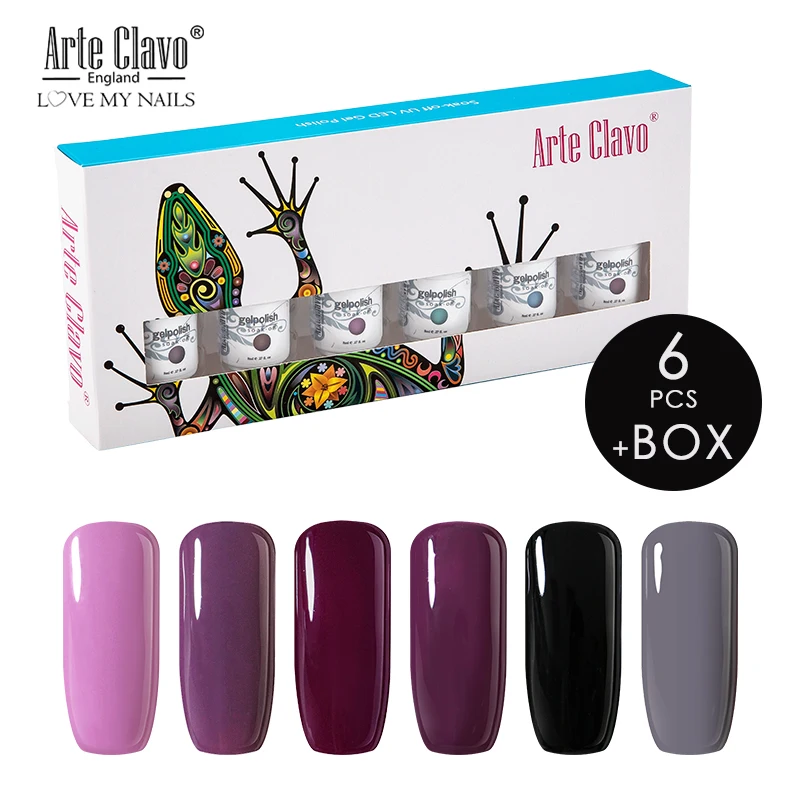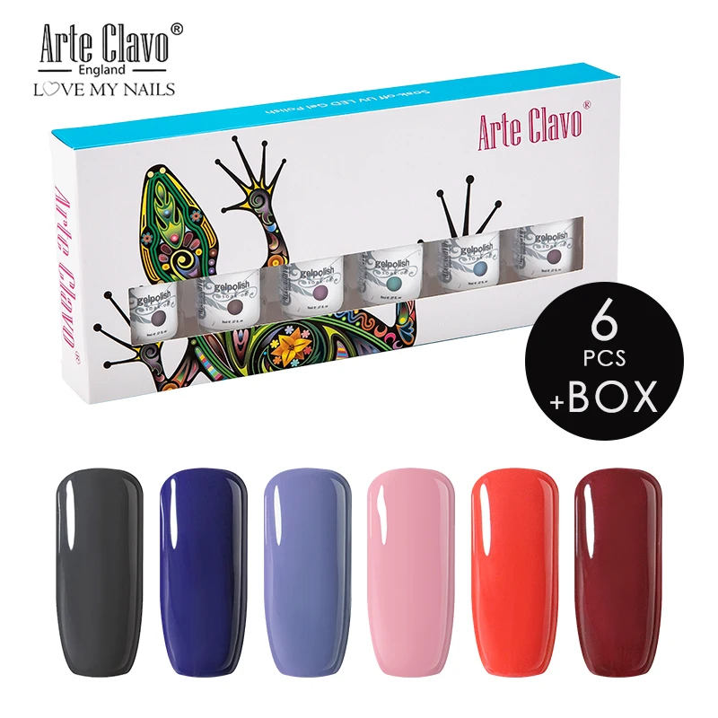 Arte Clavo Gel Nail Polish 8ml Semi-Permanent LED Varnish Gel Lacquer Set 6pcs Gift Box Soak Off Ivory White Yellow UV Gel Color
