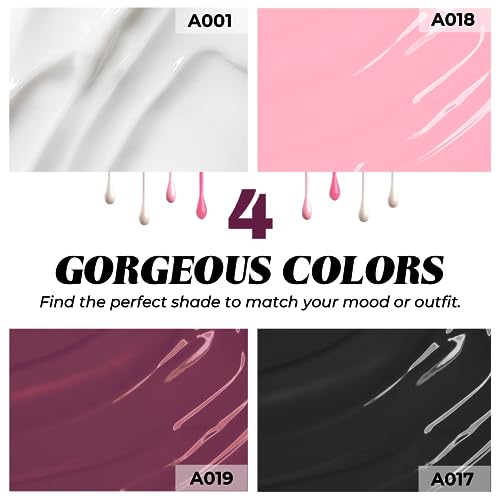 CLAVUZ Smalto Semipermanente per Unghie, 4 Colori Bianco Rosa Viola Gelso Nero, Smalti Gel gel Semipermanente Unghie Kit Soak-Off UV per Manicure Salon Nail Art DIY, 10ml