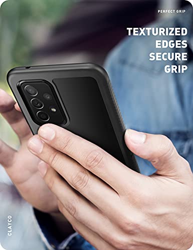 Clayco Cover per Samsung Galaxy A52 4/5G / A52s [Serie MYOS] Custodia Robusta Trasparente Protettiva Full Body 360 Gradi con Protezione per Lo Schermo Integrata (Nero)