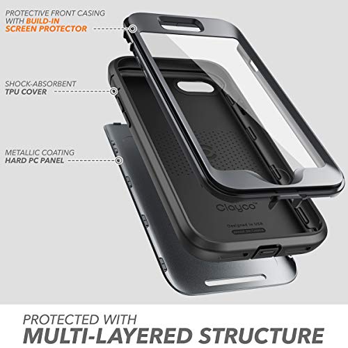 Clayco Serie Hera - Custodia protettiva con protezione integrata dello schermo per Apple iPhone 8, Nero