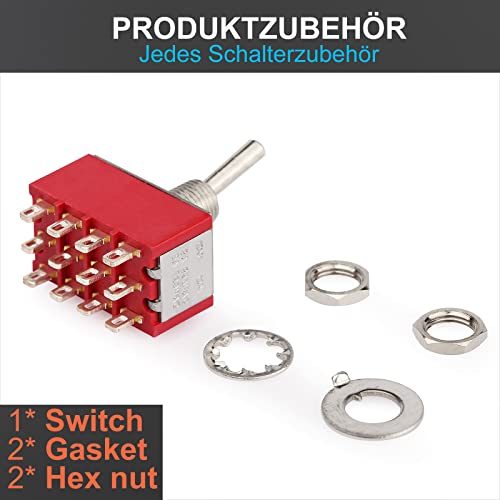 CLDIY Interruttore a levetta 12 morsetti, 2 posizioni ON-ON 6MM 3A 250V AC 5A 125V AC Rosso 5 Pcs