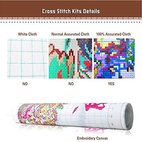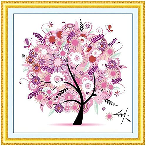Cleana Arts - 11CT, Kit per punto croce, albero autunnale, 3 fili, kit per ricamo stampato, 45 cm × 45 cm
