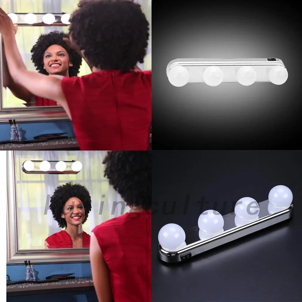 Face Cleaning 4 LED Vanity Mirror Portable Light Bulbs Studio Glow Make Up Bright Cosmetic Battery Powered Gift