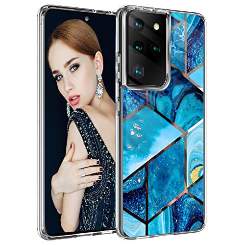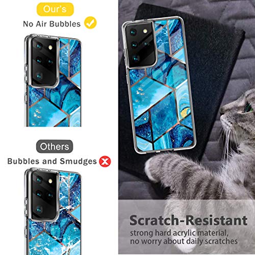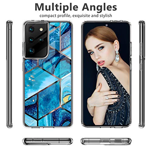 Clear Cover per Samsung Galaxy S21 Ultra 5G Custodia Marmo, Originale Cover Slim Silicone Protettiva Flessibile Trasparente TPU Ultra Sottile Antiurto Bumper Glitter Case Shell [Anti-Yellowing] (3)