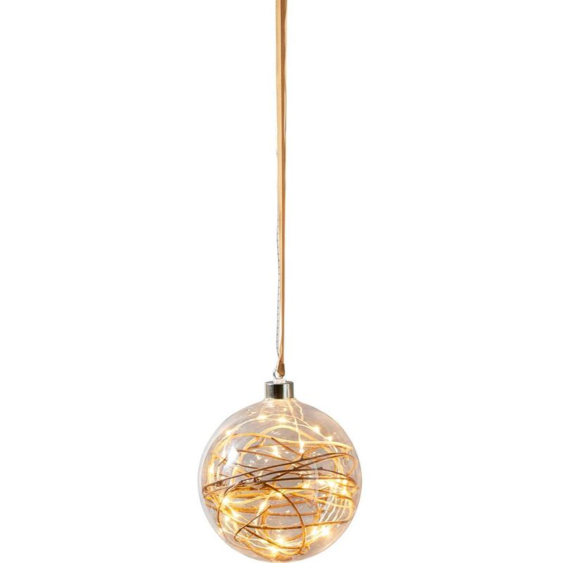 Sfera a LED di bagliore Clear H: 16 Ø: 15 cm La sfera decorativa fatta di vetro trasparente con una rete di pascoli decorativi all'interno e una fascia di tessuto marrone non solo garantisce una luce accogliente per il Natale, ma è anche adatta tutto l'anno come illuminazione decorativa per finestre Come un hangheko illuminato davanti alla finestra, questa illuminazione di Natale garantisce un'atmosfera accogliente;