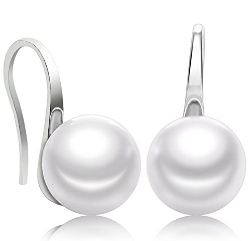 MU & Nin End Of Line Clearance , da donna classico orecchini pendenti di perle coltivate 8.5 - 12 mm bianco in argento Sterling 925 e Argento, colore: bianco, cod. HOOKPEARL
