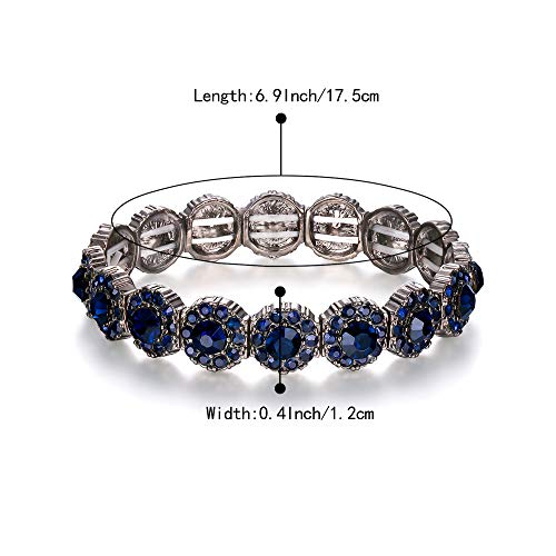 Clearine - Bracciale da donna per matrimonio, con perle di cristallo e strass, colore argento e Base metallo, colore: 02-zaffiro colore nero, cod. 12002621-2