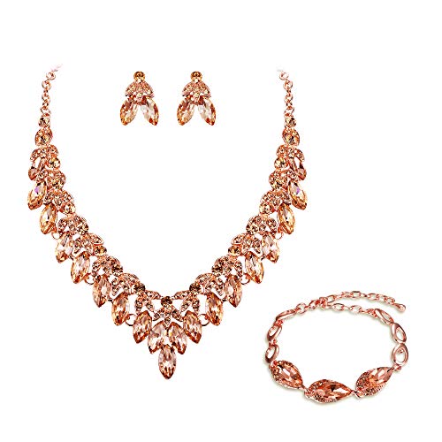 Clearine Set di gioielli da donna con strass e perle marquise Cluster e cristalli, collana e orecchini in argento trasparente per la sposa e Base metallo, colore: 05-pesca - oro rosa, cod. 12002666-5