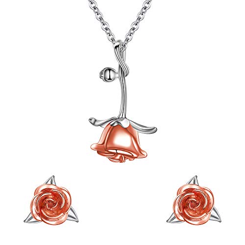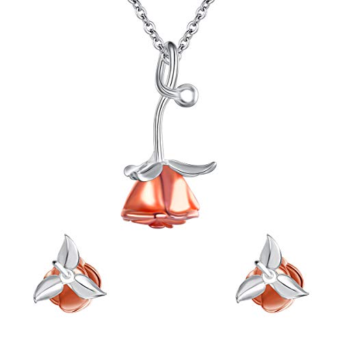 Clearine Orecchini 925 Argento Vintage Rosa Fiore Orecchini a lobo and Pendente Collana Set per Donna Ragazza