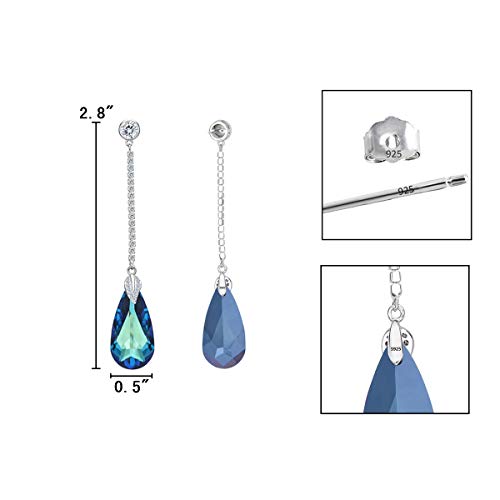 Clearine Orecchini Donna con Argento Cerimonia Nuziale Elegante CZ ciondola gli orecchini a lunga catena Goccia foglie oscillazione Ornata con cristalli Bermuda Blu