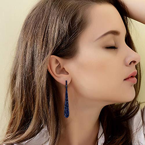 Clearine Orecchini Donna Cerimonia Sposa Elegante Cristallo Goccia con perline Lungo Orecchini pendenti per Donna Navy Blu Nero-fondo