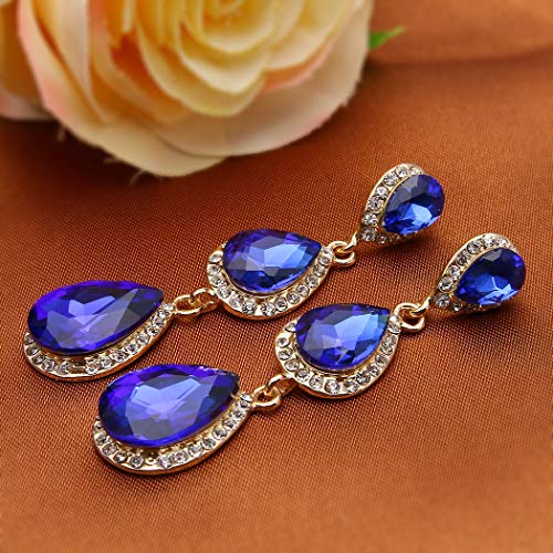 Clearine Orecchini Donna magnifico Piccolo - Grande Triple a goccia Cristallo Orecchini pendenti Navy Blu Oro-fondo