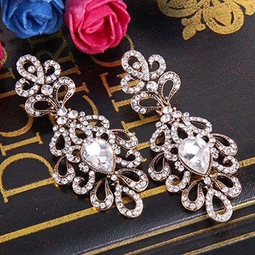 Clearine Orecchini Donna Retro Stile Matrimonio da sposa Floreale scava fuori Cristallo Lampadario Ciondolare Orecchini
