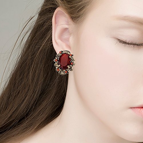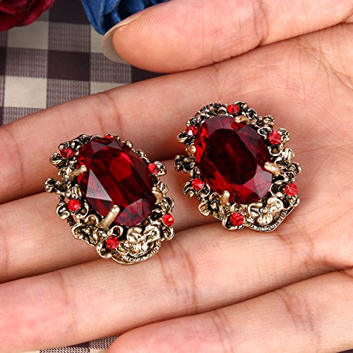 Clearine Orecchini Donna Vittoriano Stile Cristallo Floreale Cammeo Ispirato Ovale Clip-On Perno Orecchini Rosso Colore Antico-Oro-fondo