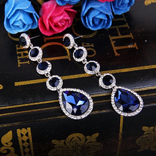 Clearine Orecchini Elegante Sposa Nuziale Cristallo perlina Lacrima lampadario Ciondolo Orecchini Scuro Blu