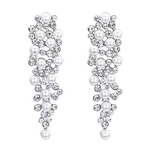 Clearine Orecchini Matrimonio Sposa Perla simulata Orecchini per Donne Cristallo Multi in rilievo Grappolo Orecchini Lampadario pendente Trasparente Argento-fondo