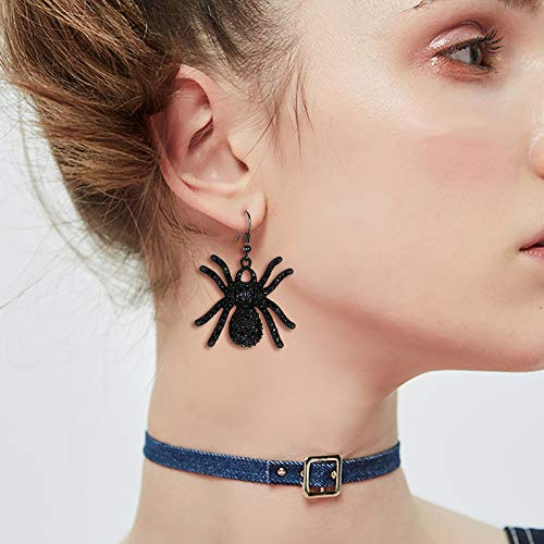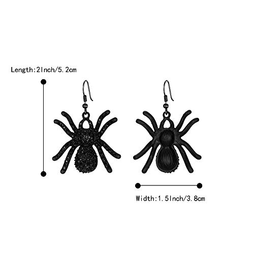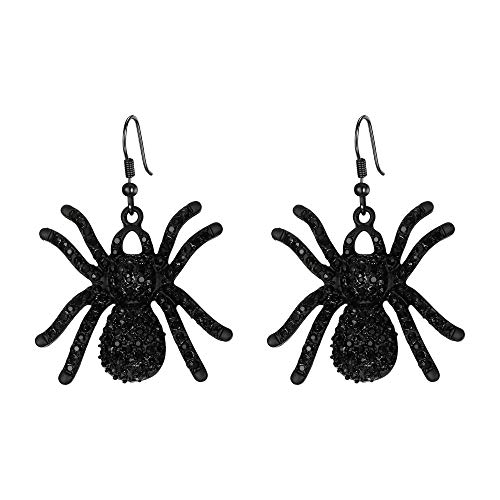 Clearine, orecchini pendenti con ciondolo a forma di ragno tarantola gotico nero con cristalli, orecchini punk e raccapriccianti per Halloween