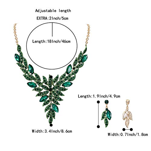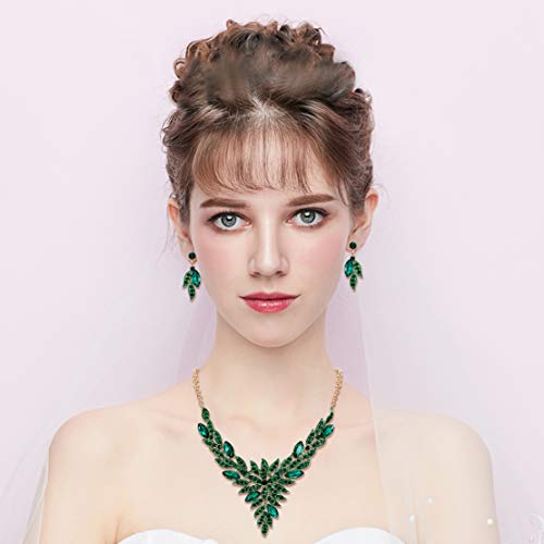 Clearine Parure Gioielli Donna Matrimonio Sposa Cristallo Multi Foglia Statement Collana Orecchini Pendente Set Colore Smeraldo Oro-Fondo