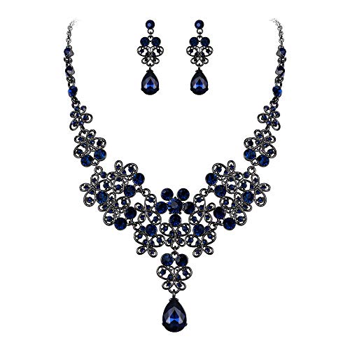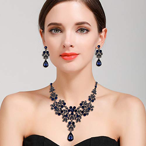 Clearine Parure Gioielli Donna Nozze Nuziale Set di Gioielli Rhinestone Farfalla Filigree Statement Collana Orecchini Pendenti per Donna Colore Zaffiro Nero-Fondo