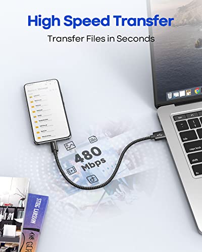 ★【 Ricarica Rapida e Trasferimento Dati】Questo cavo usb c con certificazione sicura e ricarica rapida di alta qualità a 3A massimo, connessione rapida e velocità di trasferimento dati ad alta velocità fino a 480Mb/s ti aiuta a lavorare in modo efficiente. La resistenza integrata di costruito 56KΩ è sicura da caricare e protegge il dispositivo dai danni.
