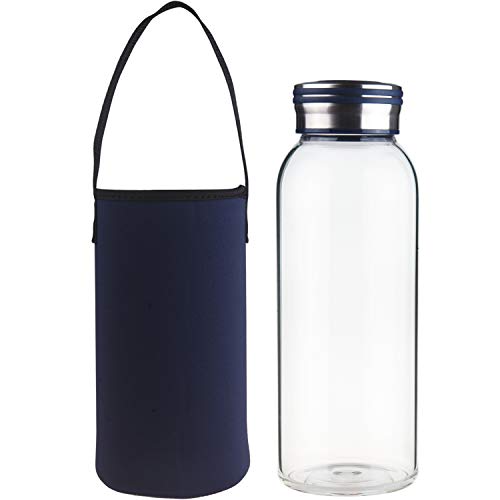 Cleesmil Bottiglia di Acqua in Vetro, Borraccia in Vetro con Custodia in Neoprene 1.5 Litro / 1.5 L(Blu)