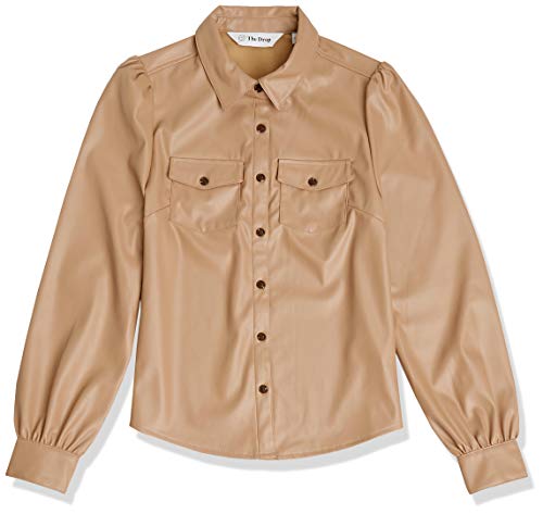 The Drop, Clemence, Camicetta Utility in Ecopelle con Maniche Lunghe a Sbuffo, Cammello, XXS