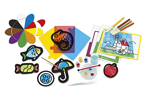 COLORI MONTESSORI: gelatine colorate sovrapponibili, tempere, pennello, 8 pennarelli e schede da colorare sono gli strumenti di questo ricco gioco educativo Montessori per scoprire i colori attraverso la sperimentazione pratica