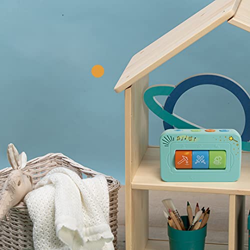Girando i 3 rulli il bambino potrà decidere l'ambientazione della storia, il protagonista tra animali, personaggi di fantasia, mascherati o mestieri e dar vita alla favola scegliendo cosa far accadere