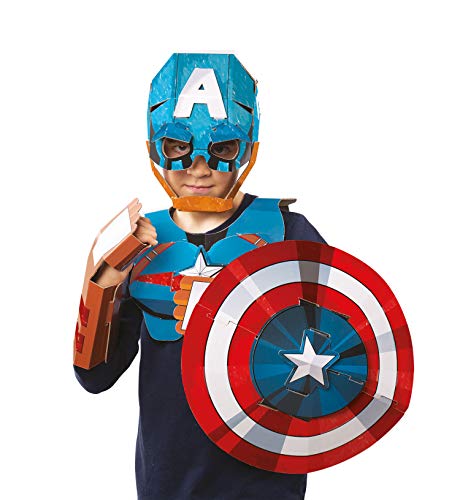 Un kit con tutto l'occorrente per assemblare casco, scudo e pettorina di capitan america e giocare ad impersonare questo grande supereroe