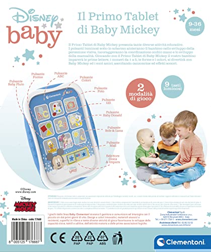 Clementoni Disney Baby Mickey Giocattolo, Topolino, Gioco elettronico parlante in Italiano, Primo Tablet Bambini 9 Mesi, Multicolore, 17668