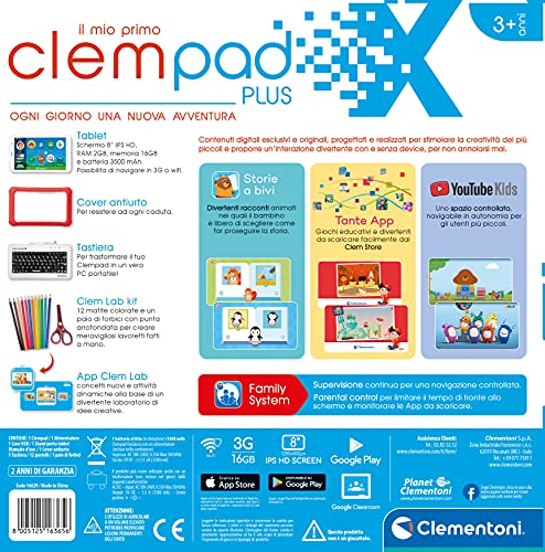 Clementoni- My First 8'' Plus, Tablet per Bambini-clempad 3 Anni, 8 Pollici, Android 9, 16 GB di Memoria, 3G o WiFi, Tante App preinstallate, Tastiera Inclusa, Versione in Italiano, Multicolore, 16629