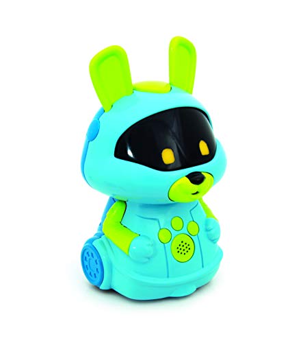 Bunny_bit sente il rumore e reagisce al battito delle mani del bambino. Questo divertente piccolo robot si muove e balla per il numero di volte che batti le mani