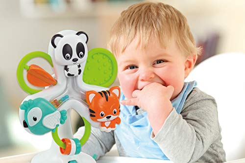 La ventosa sotto la base permette di fissare il gioco al piano del seggiolone in modo pratico e semplice