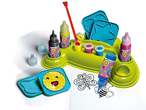 Gli stampini di diverse forme vengono riempiti con una speciale miscela di colla vinilica e colori perlati, per creare disegni dagli effetti unici e originali!