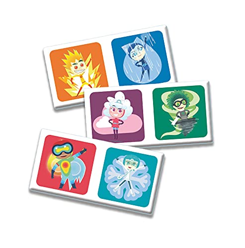 Clementoni- Meteo Heroes logica Domino educativo 4 Anni-flashcards-Carte da Gioco per Bambini-Play for Future-Made in Italy, Multicolore, 16346