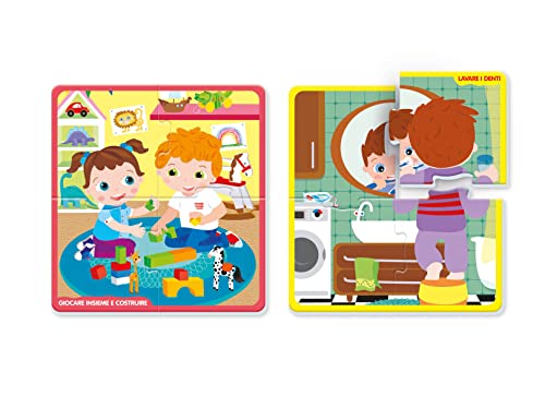 MODALITÀ DI GIOCO: Il piccolo dovrà ricreare le immagini delle attività che i bambini provano a fare da soli a 2 anni: dal mangiare da soli, al lavarsi i denti, al giocare insieme agli altri e tanto altro ancora