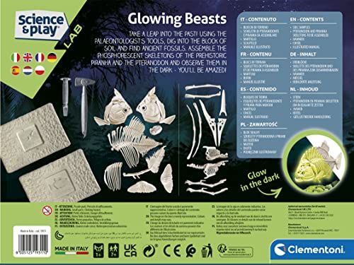 Clementoni- Science & Play-Glowing Beasts-Gioco Scientifico 7 Anni (Italiano, Inglese, Francese, Tedesco, Spagnolo, Olandese E Polacco), Made in Italy, Multicolore, 19311