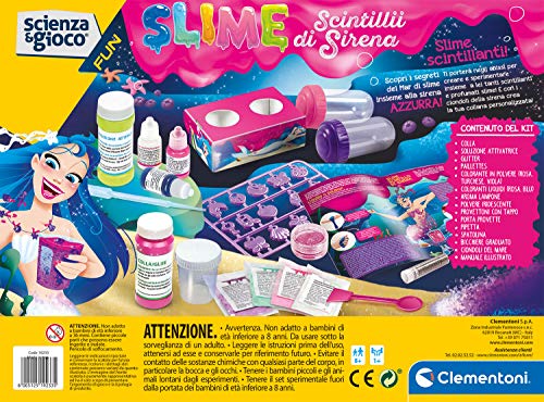 Clementoni - Scienza e Gioco Fun, Slime Scintillii di Sirena, Gioco Scientifico 8 Anni, Laboratorio Slime Esperimenti, Fabbrica Slime, Kit per Slime, Versione in Italiano, 19233