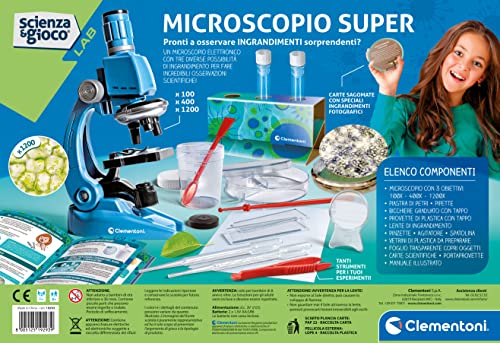 Clementoni Lab Super-Laboratorio, Microscopio Bambini Ottico, Oltre 50 Esperimenti di Scienza, Gioco Scientifico 8 Anni (Versione in Italiano), Multicolore, 19293