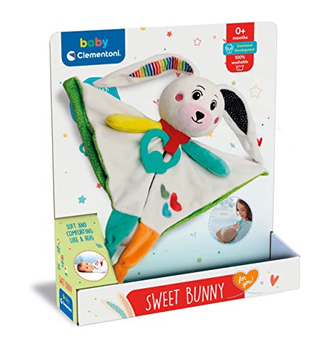 Clementoni- Sweet Bunny-Peluche, Doudou, Copertina Sicurezza Neonato, Coperta Allattamento, Giocattolo Bambini 0-36 Mesi-100% Lavabile, Multicolore, 17791