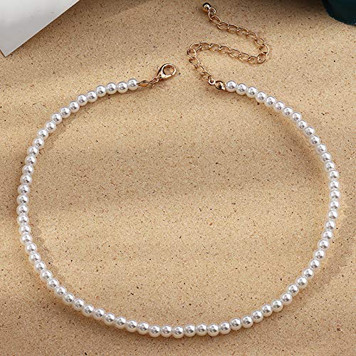 Clenp Collane da Donna, Collana da 1/5 Pezzi Eleganti Gioielli di Pregevole Fattura Girocollo di Perle Tonde Finte per L'uso Quotidiano 4 35 cm